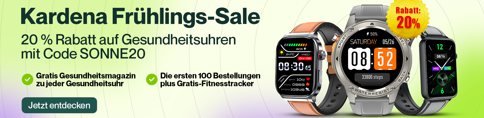 Zu jeder CARE Gesundheitsuhr ein zufälliges Zusatzarmband.